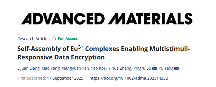 作者:Bin-Bin Hu, Peng-Yun Li, Xiao-Xi Yang, Yi-Fan Fan, Chang-Fu Shan, Ping-Ru Su, Jing Cao*, Bo Cheng*, Wei-Sheng Liu, and Yu Tang*
