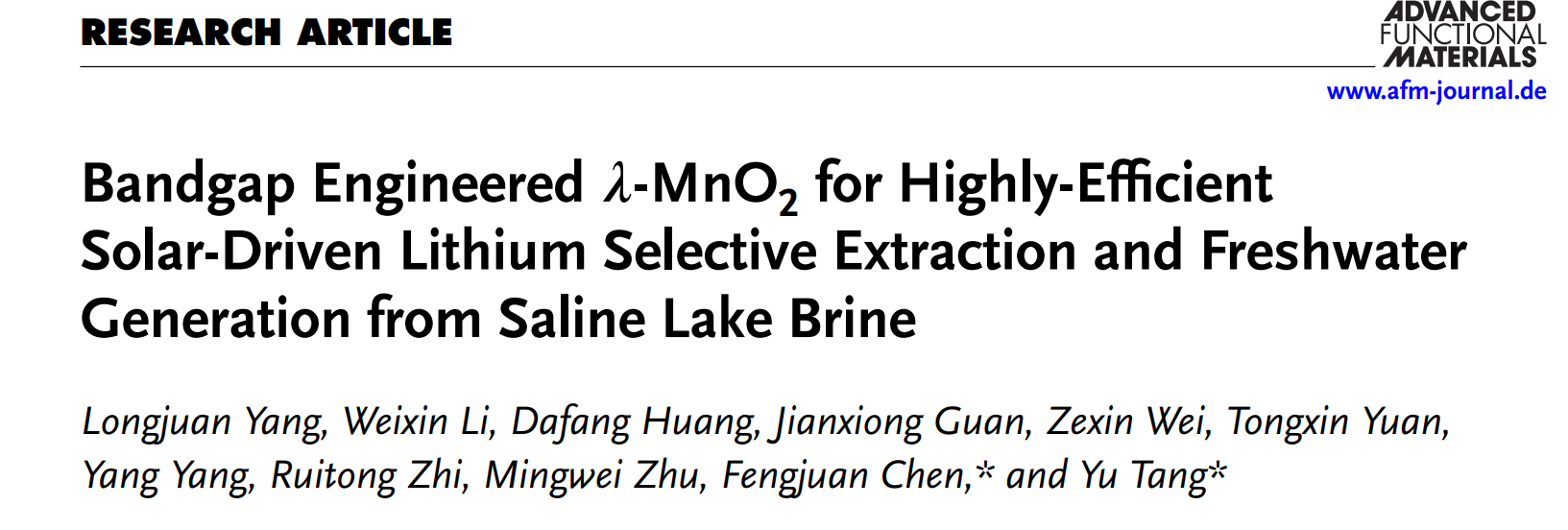 作者:Xiaoxia Wu, Tong Zhang, Jiaxu Wei, Pengfei Feng, Xingbin Yan, and Yu Tang*