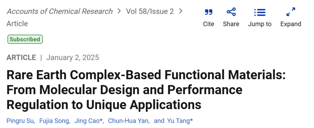 作者:Pengfei Feng, Xiaoxi Yang, Xiaoxia Feng, Guodong Zhao, Xiaochen Li, Jing Cao,* Yu Tang,* and Chun-Hua Yan*