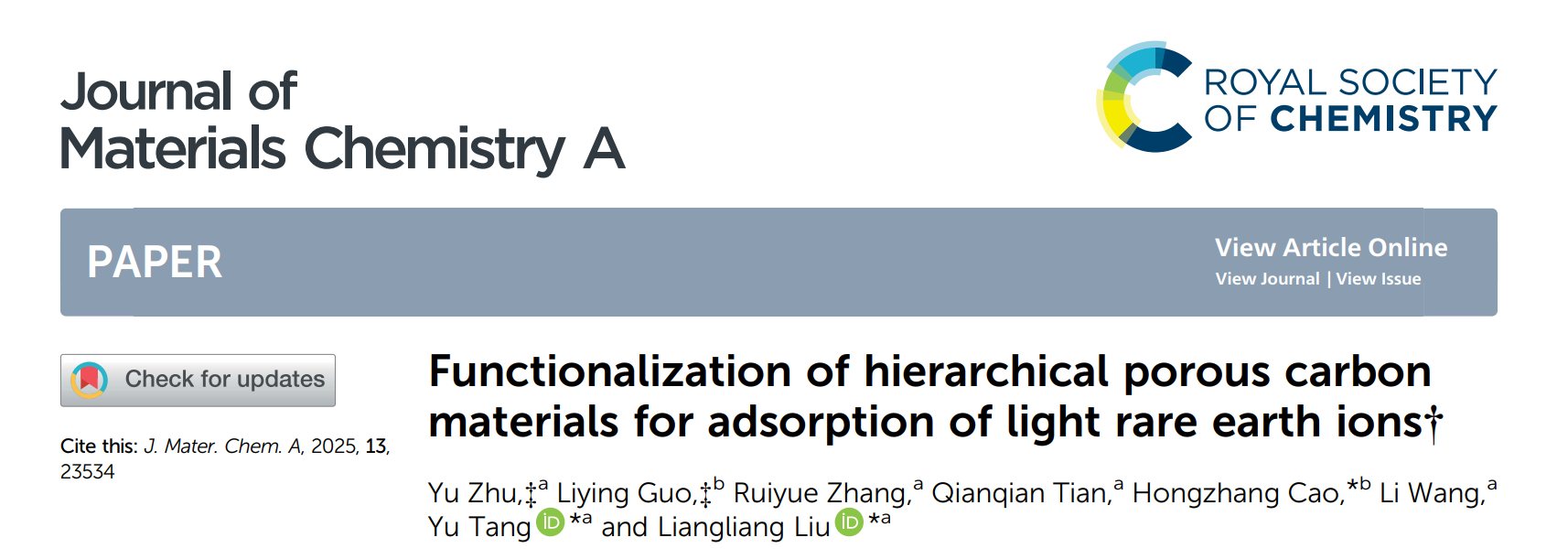 作者:Haiyan An, Yang Hu, Nan Song, Tingliang Mu, Shiqiang Bai, Yong Peng, Liangliang Liu and Yu Tang*